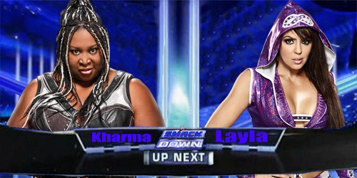 Winner by disqualification: Randy OrtonHowever, The Shield continue to attack Orton and hits a Triple Powerbomb on Orton after Swagger attacks The Shield and they retreat leading commentators questioning whether Swagger is the mystery personCommercial Break (Reply of The Shield's attack on Sheamus)https://youtu.be/BStEgznVT4wLayla comes through the entranceway to a slightly positive response. She makes her way to the ring while high fiving some fans. She gets into the ring and waits on her opponent. https://youtu.be/eATchTGlkAQKharma comes out to a moderately positive response. Kharma makes her way to the ring slowly as they reply the #1 contender Divas Championship battle royal. When Kharma reaches the ring, she unnervingly stares at Layla before crawling up onto the ring apron. She steps into the ring and the referee rings the bell.